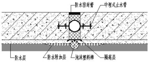 2、迎水面管根四周预留凹槽,采用柔性密封膏嵌填密实;