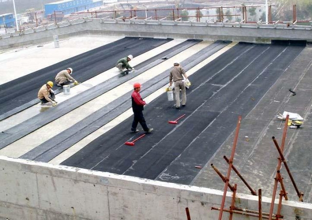 ②刷油法:是用毛刷将沥青胶在基层上刷开,刷油长度以300~500mm为宜,出油边不应大于50mm,然后快速铺压卷材;