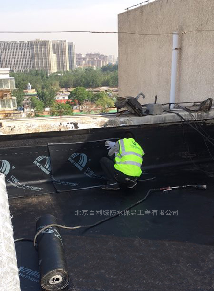 北京小井润园小区屋面防水维修工程,采用东方雨虹防水卷材,施工面积约3768平方米