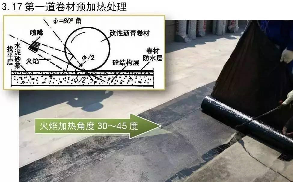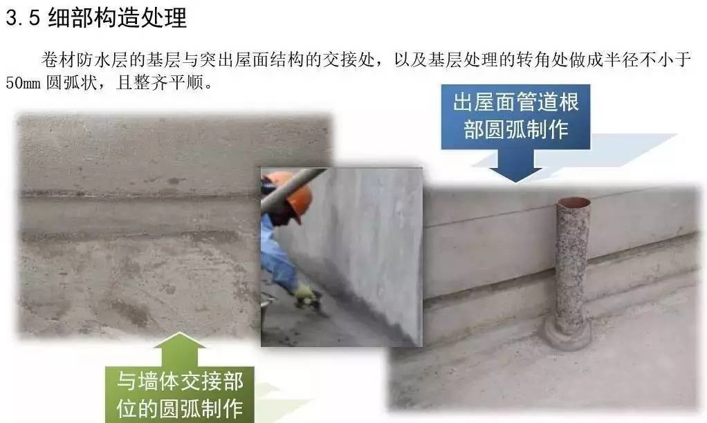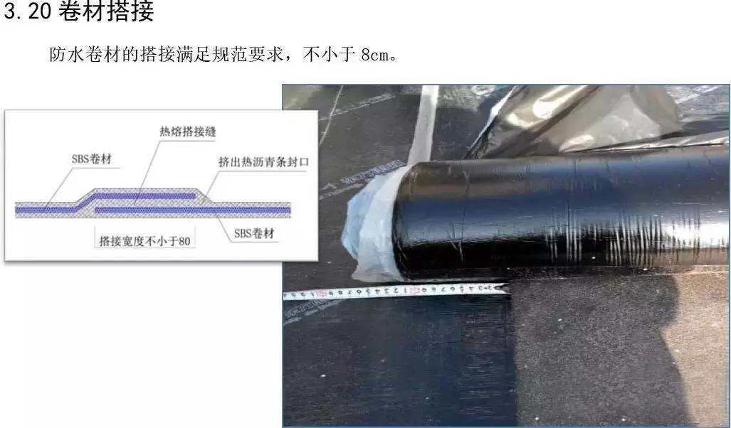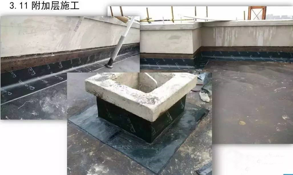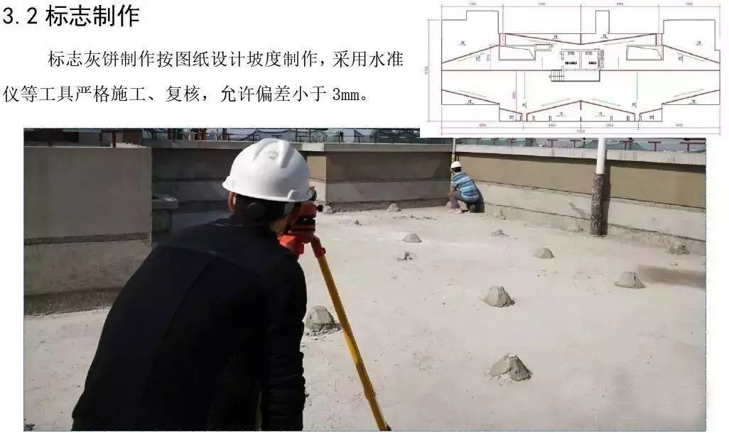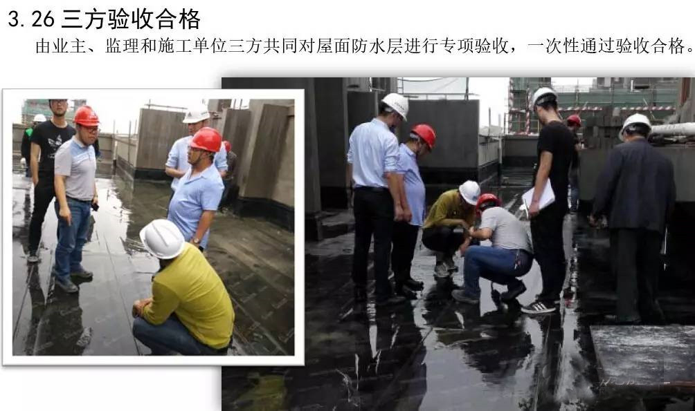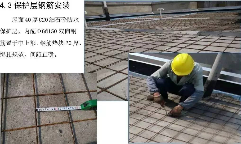 屋面防水工程为3厚SBS自粘聚合物改性沥青聚酯胎体防水卷材两道;40厚C20细石混凝土保护层内配Φ6@150双向钢筋。根据现场实际施工进度情况,确定3#楼屋面防水工程作为样板展示区,其它楼号参照3#楼屋面执行施工。