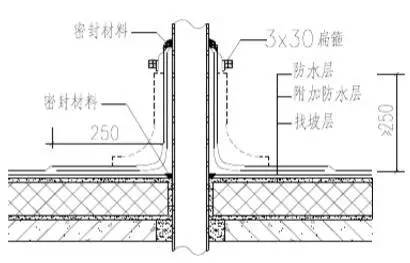 3、保证管根部位的泛水高度不低于屋面完成面以上250mm;