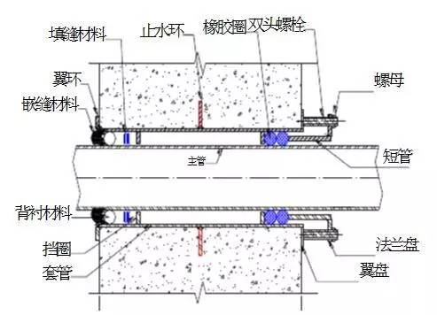 2、迎水面管根四周预留凹槽,采用柔性密封膏嵌填密实;